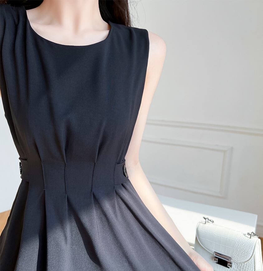 お取り寄せ/2色 3サイズ 丸襟ワンピース ワンピース ミドル丈 上品 春 夏 秋 袖なし 無地 きれいめ Aライン ウエストマーク ラインスッキリ お洒落 可愛い 大人可愛い シンプル お出かけ 休日 旅行 お買い物 女子会 デート 通勤 2 0代 30代 40代 50代 | anje17